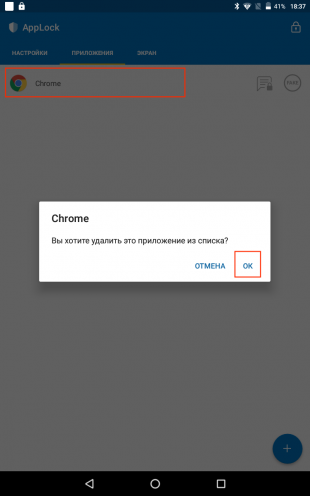 Для отключения блокировки необходимо тапнуть по приложению в списке на главном экране и нажать OK. Также AppLock позволяет отключить уведомления из заблокированной программы и может отображать фейковые баннеры об ошибке при открытии приложения. В последнем случае нужно удерживать OK на баннере, чтобы появился запрос на ввод пароля. Обе функции включаются кнопками напротив программы в списке.