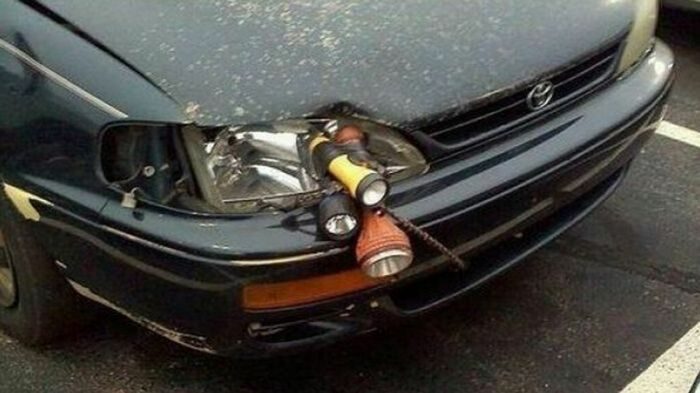 А вот этот лайфхак должны взять на «вооружение» все водители. Разбили фару? Не беда. Используйте три-четыре мощных фонарика по дороге в автосервис.