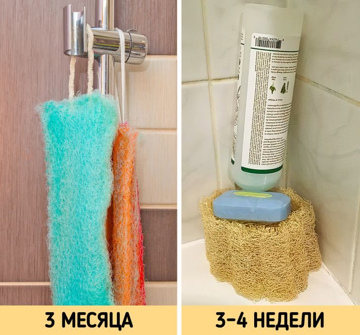 Люфа может выглядеть вполне безобидно, но быть при этом настоящим рассадником бактерий и грибков. Изделиями из этого натурального материала можно пользоваться всего 3–4 недели. У синтетических мочалок срок больше — до 3 месяцев.