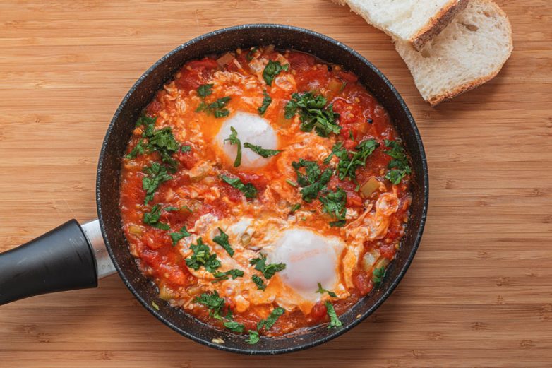 Шакшука — это полноценное блюдо, которое можно приготовить не только на завтрак, но и на обед. Есть нужно прямо со сковороды, макая ломтики хлеба в соус.