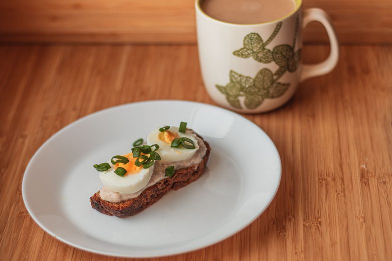 Яйцо и тунец — классическое сочетание ПП-рецептов. Так что этот завтрак приносит не только физическое, но и моральное удовлетворение.