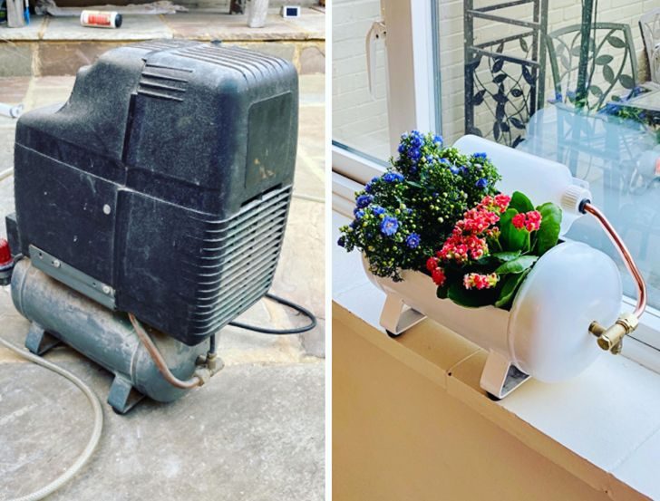 «Я превратил сломанный воздушный компрессор в цветочный горшок с резервуаром для воды»