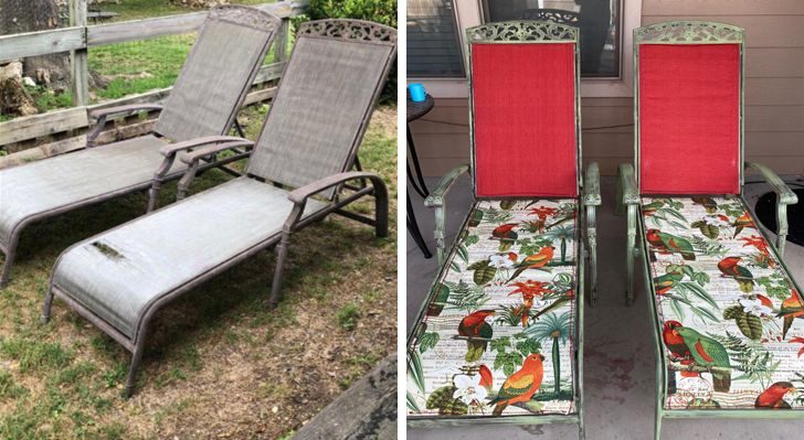 «Нашел 2 шезлонга в мусорной куче. Заменил ткань и покрасил рамы, теперь они как новые»
