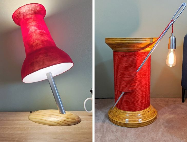 7. «Я спроектировал и изготовил настольные лампы в виде гигантской кнопки и катушки ниток»