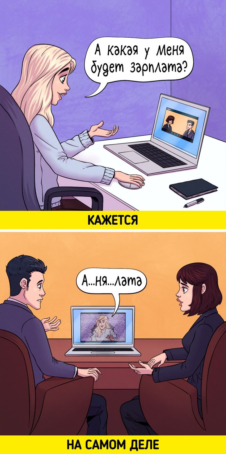 О том, что для участия в рабочих интервью необходимо приводить себя в порядок, знают многие. Но это правило часто игнорируется при проведении онлайн-собеседований: некоторые соискатели позволяют себе появиться на важном мероприятии в домашней, заляпанной кетчупом одежде или в деловом пиджаке поверх пижамных шорт.