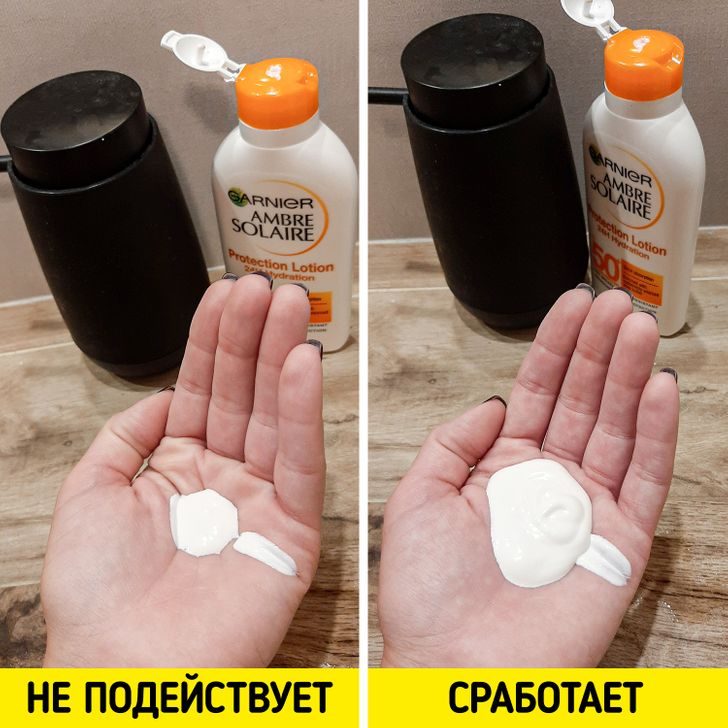 Причина — неправильное нанесение средства: большинство людей используют только 25–50 % от необходимого количества. Чтобы полностью защитить тело взрослого человека, необходимо около 30 г крема. Кроме того, следует помнить, что наносить санскрин нужно за 15 минут до выхода на улицу, при этом желательно обновлять покрытие каждые 2 часа при нахождении под солнцем.
