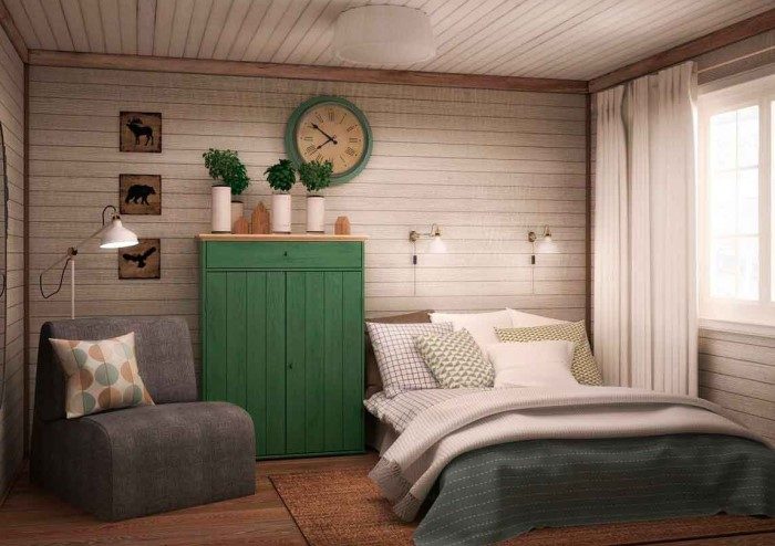 Деревянная вагонка — классика вне времени. Но забудьте о желтых лакированных стенах и покрасьте изделие в трендовый оттенок. Например, пастельная гамма (от светло-песочного до кремового) всегда актуальна. Комбинация графитового, серого и белого хорошо смотрится с яркими акцентам. Глубокие оттенки бордового, зеленого и синего подходят для любителей темных интерьеров.