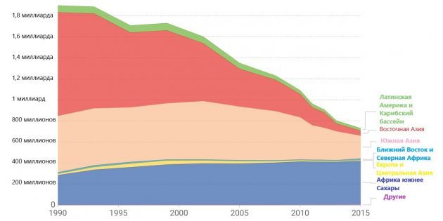 В 1993 году 56,7% населения Китая получало меньше 1,9 доллара в день. В 2016 году таких оказалось лишь 0,5%. То есть сотни миллионов китайцев вышли из абсолютной нищеты буквально за 30 лет. Руководство страны даже с гордостью заявило, что победило бедность. А всё благодаря большому количеству трудоспособного населения и жёсткой централизованной власти.