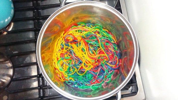 Если вы никак не можете заставить ребёнка (любого возраста) доесть свою порцию макарон или спагетти, попробуйте небольшую кулинарную хитрость. Приготовьте радугу. От такой позитивной экзотики никто не откажется. А понадобится всего лишь пачка любимых макарон и жидкие пищевые красители.