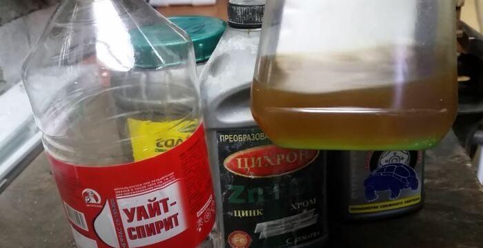 Сама же по себе проникающая смазка кустарного изготовления – вещь абсолютно бесхитростная. Делается она из Уайт-Спирита или керосина и машинного масла. Смешиваются ингредиенты в чистой емкости в соотношении 3 части керосина (Уайта) на 1 часть моторного масла. Состав нужно тщательно размешивать в течении 1.5-2 минут. После этого его можно использовать по прямому назначению. В том числе и без описанного выше баллона, пустив в дело пипетку или шприц.