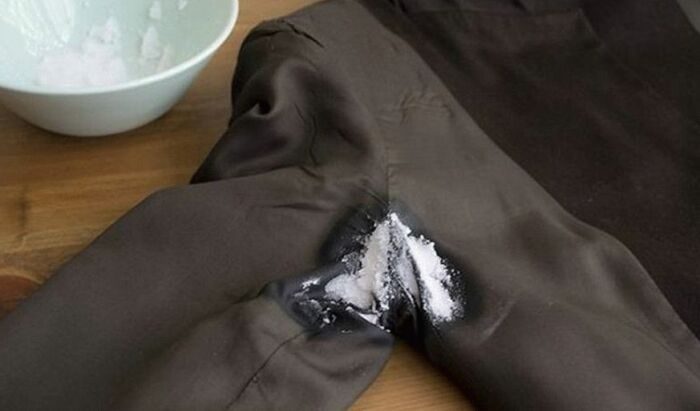 Незаменимым средством является и обычная поваренная соль, которая подходит и для белой, и для цветной одежды. Вещь из шерсти обрабатывается солевым раствором. При условии, что материал не шерстяной, соль сыплется на проблемный участок и при помощи круговых движений втирается. Останется только убрать соль и отправить вещь в стирку.