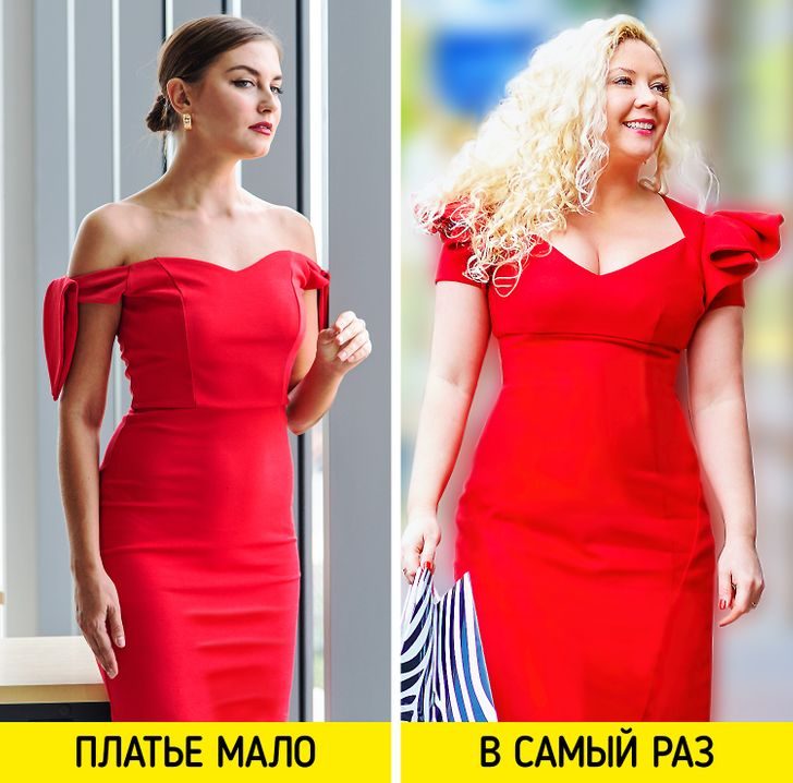 Покупая классическое платье облегающего силуэта, уделите внимание плечевым швам. Важно, чтобы они лежали ровно, а ткань не морщила. Платье мало, если спереди на подоле видны складки — значит, ткань натянута, двигаться будет неудобно.