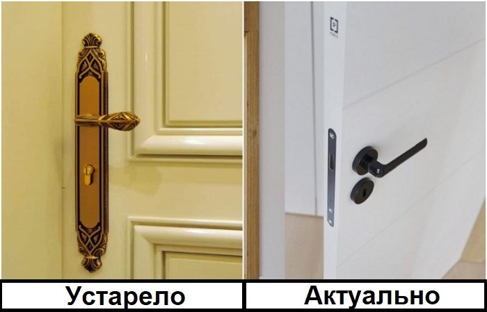 Лепнина, хрусталь, вычурная мебель на золотых ножках, картины в массивных рамах – все эти дизайнерские приемы должны были остаться в 2000-х, а не заново возрождаться в советских квартирах. Во времена, когда интерьеры подчиняются правилам природности, лаконичности и уверенности, помпезность стала излишней. Поэтому лучше заменить сверкающую позолоченную фурнитуру на латунную – это будет красивее и практичнее. Если есть желание сделать интерьер более креативным, можете дополнить мебель оригинальными антикварными ручками.
