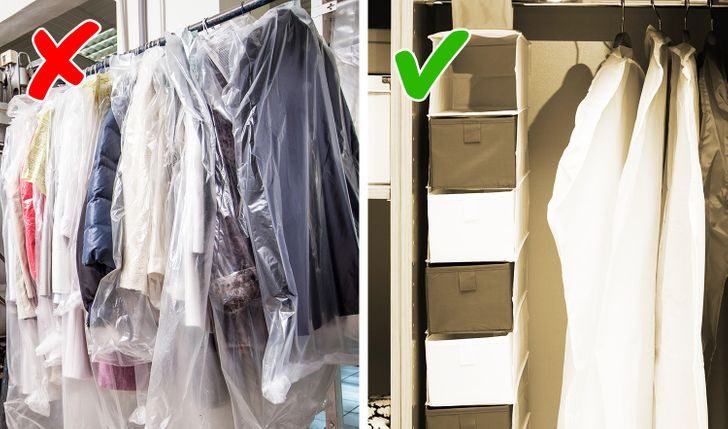 Пакеты из химчистки могут задерживать влагу на вашей одежде, что приведет к появлению плесени, обесцвечиванию и неприятному запаху.