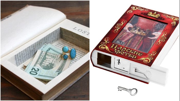 В книгах и фотоальбомах всегда можно организовать укромное местечко для ценных вещей.