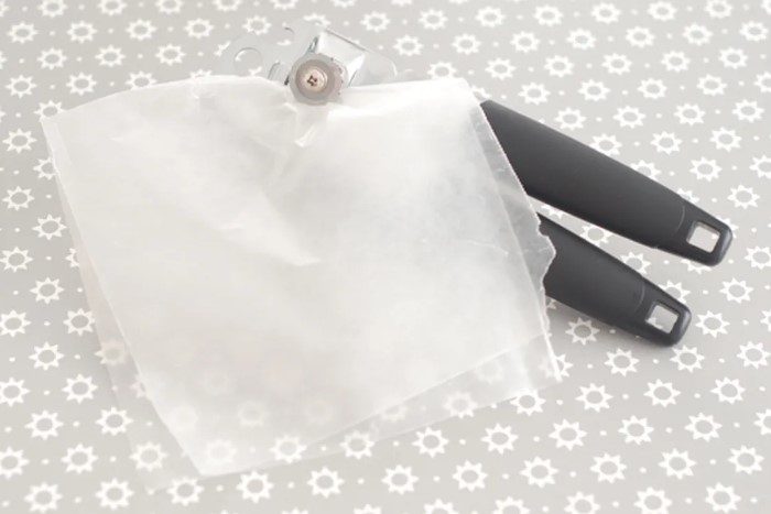Кухонные открывалки постоянно забиваются крошками и частицами жира? Прочистите их пищевым пергаментом, используя предметы привычным способом.