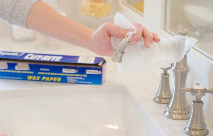 Хромированные изделия прекрасно смотрятся в интерьере, но требуют тщательного ухода. Бумага для выпекания как раз пропитана воском, поэтому оставит на поверхности ручек и кранов защитный слой. Также пищевой пергамент поможет избавиться от жирных отпечатков пальцев на изделиях из нержавеющей стали. Достаточно натереть предметы бумагой, и результат налицо.