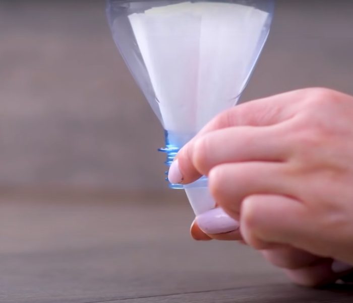 Когда в доме не хватает места для размещения комнатных растений или хочется использовать какой-либо креативный подход, стоит присмотреться к идее горшков из пластиковых бутылок. Для начала необходимо отрезать верхнюю часть бутылок, убрать крышку, поместить в отверстие сложенный в несколько раз фильтр для кофемашины, а сверху насыпать земли. На противоположных сторонах края бутылки нужно сделать по отверстию, чтобы затем соорудить подвесную конструкцию. Несколько бутылок и комната или балкон полностью преобразятся за счет зелени.