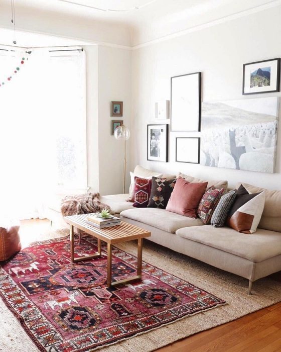 Не хотите экспериментировать? Значит, просто положите ковер на пол или повесьте на стену, как это делали наши бабушки и родители. Учтите, что такой акцент будет уместен в нейтральном, лаконичном интерьере, он задаст тон имеющемуся пространству.