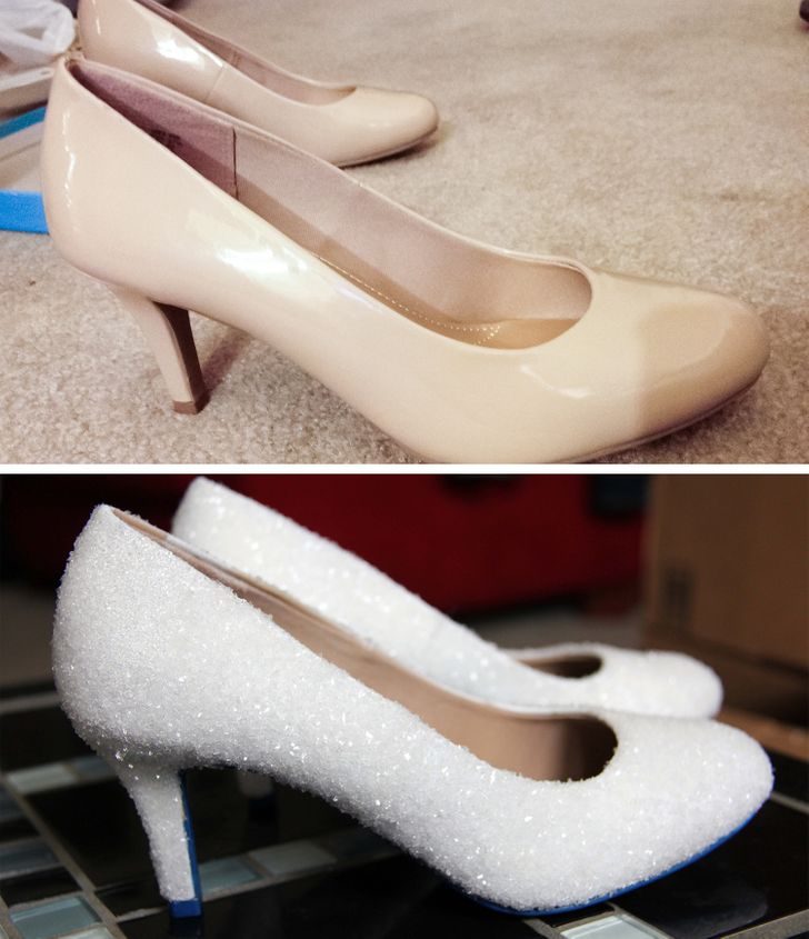 «Купила за $ 5 пару уродливых коричневых туфель. С помощью краски и блеска освежила их»