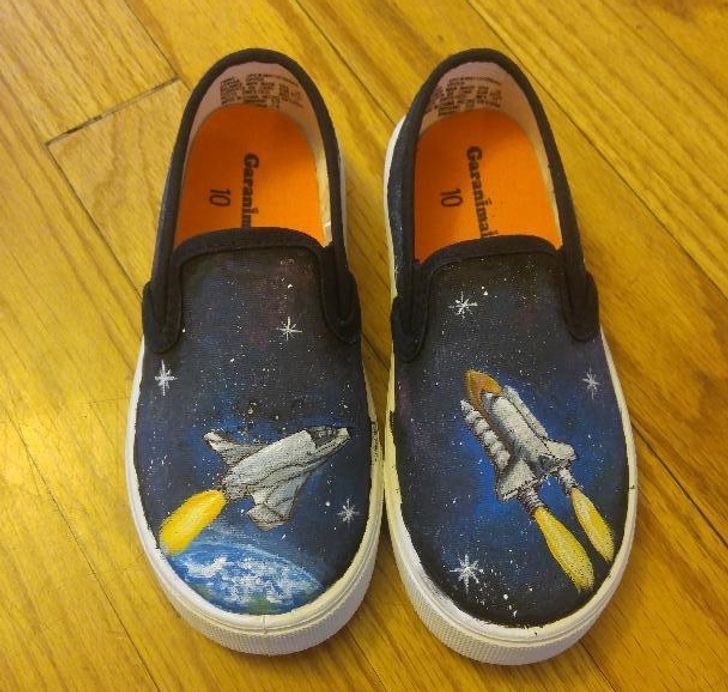 «Мой 3-летний сын попросил нарисовать космический корабль на обуви. Он нашел картинку в интернете, и я сделала»