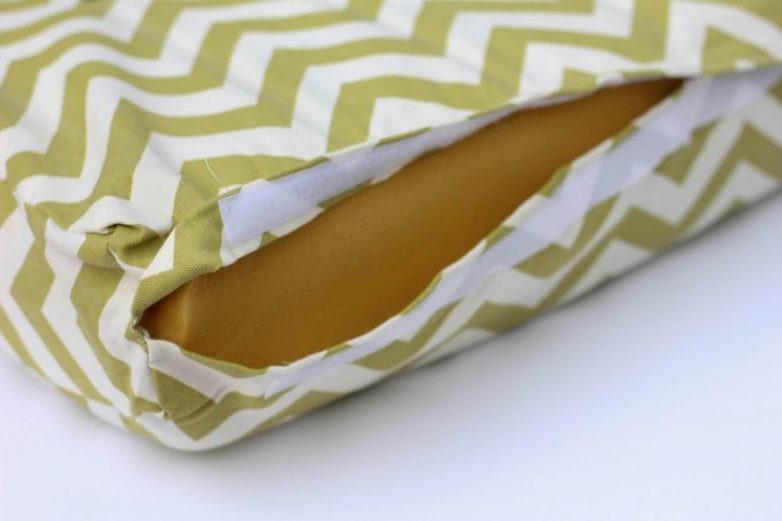 Прострочите все швы, контролируя отступы от кромок. Если вы не устанавливали липучку, оставьте небольшое отверстие, чтобы чехол можно было вывернуть.