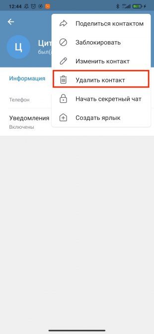 Как удалить контакт в Telegram на Android-смартфоне