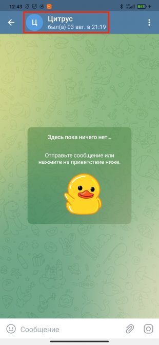Перейдите на вкладку «Контакты» и тапните по имени пользователя в списке или найдите его через поиск. Если вы уже общались с этим человеком, можно просто перейти в ваш диалог.