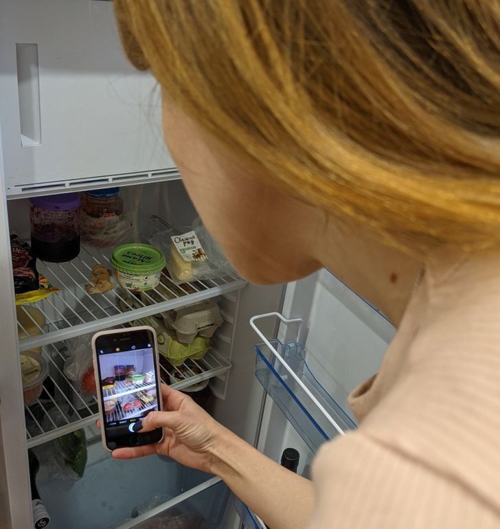 Фото содержимого холодильника и шкафчика с крупами перед походом за продуктами избавит от необходимости тратить деньги на товары, которые у вас уже есть. Идеальный вариант для тех, кто не любит возиться с составлением списков.