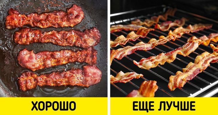 Бекон содержит избыточное количество жира, поэтому приготовление в духовке позволяет немного его подсушить и добиться идеальной хрустящей текстуры.