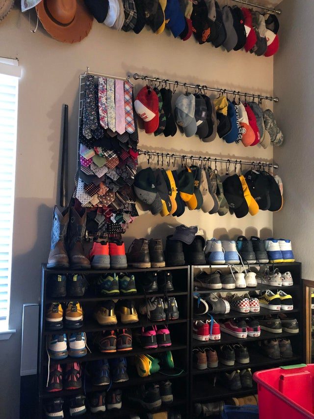 8. Бейсболки, кроссовки и галстуки — максимально компактно и удобно.
