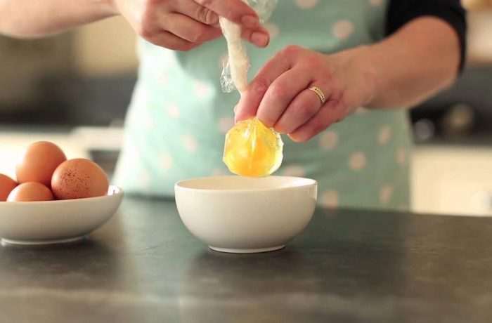 У модного нынче блюда довольно интересный метод приготовления. В идеале нужно закипятить воду с добавлением уксуса и соли. Далее создать в кастрюле водоворот, а в центр влить сырое яйцо. При этом желток не должен лопнуть, а белок — расплыться в воде. Однако есть способ попроще с использованием пищевой пленки. Отрежьте большой кусок материала и в самый центр вылейте яйцо. Аккуратно соберите края и свяжите полученный мешочек ниткой. Закипятите воду и окуните в нее пленку с яйцом на пару минут, чтобы затвердел белок. Блюдо готово!