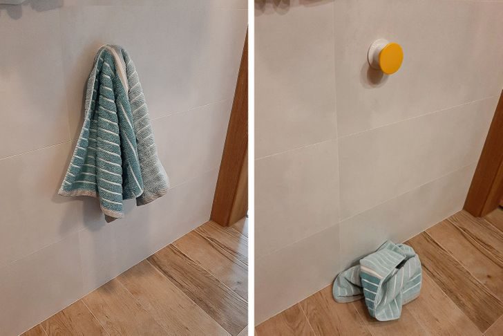 Это же нормально, что все полотенца всегда падают со своих крючков и вешалок, правда? Вообще-то нет, если использовать специальные держатели для полотенец. Нужно просто пальцем вставить краешек ткани в разъем — и все. Полотенце держится и больше не падает.