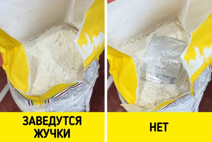 Чтобы предотвратить появление насекомых в муке, к ней можно положить кусочек фольги