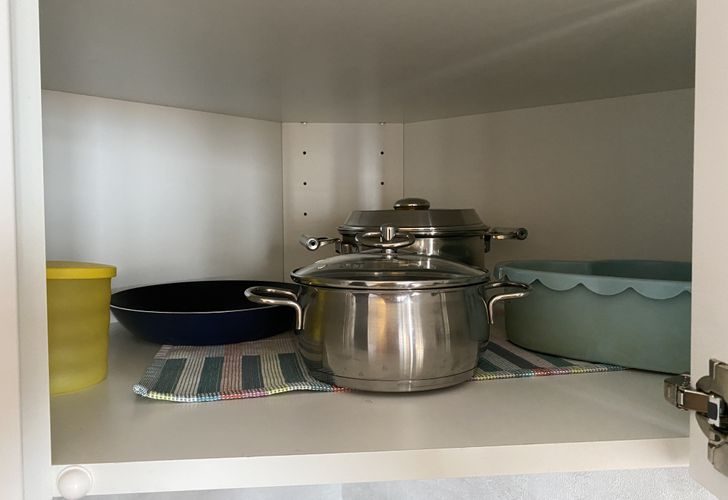 Использовав на своей кухне пространство по максимуму, я сделала глубокие угловые ящики. Теперь, когда тянусь за кастрюлей, чувствую, словно делаю какое-то упражнение на растяжку. К такому я (даже с моим высоким ростом и длинными руками) совсем не была готова. Приходится убирать вглубь то, что реже использую, но все равно не очень удобно.