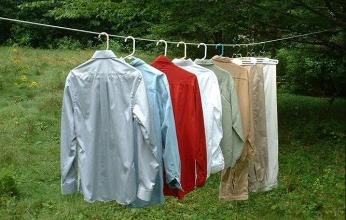 Первое, что можно сделать, — выветрить неприятный аромат. Развесьте вещи на свежем воздухе или на балконе с открытым окном. Если такой возможности нет, повесьте одежду на самое продуваемое место и включите вентилятор для максимального эффекта.