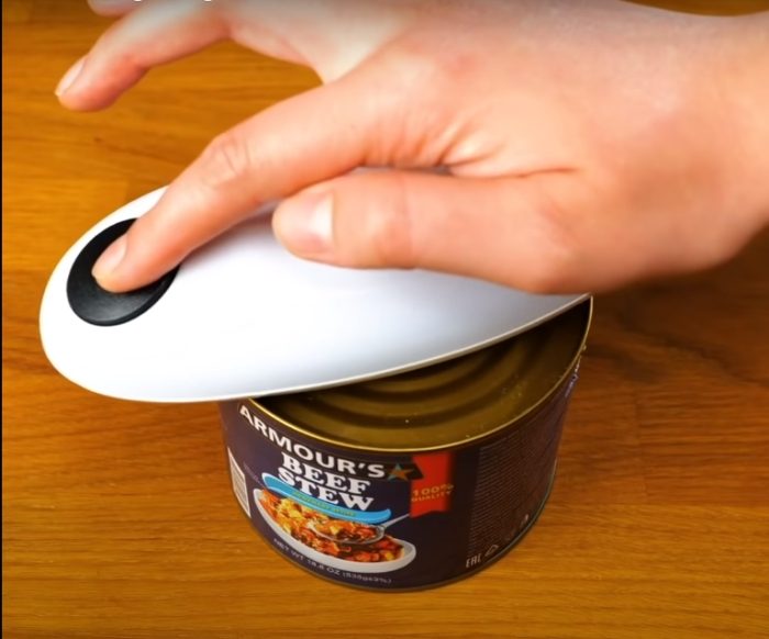 С этим устройством от рутинной задачи по открыванию консервных банок можно получать удовольствие. Все что нужно: положить сверху автоматическое устройство, нажать на кнопку, а оно выполнит все остальное. Гаджет движется по кругу и металлическим роликом аккуратно и ровно вскрывает консервную банку: никаких усилий, стресса или порезов. Очень удобно, быстро и практично.