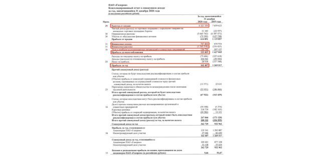 Иногда даже российские компании публикуют отчёт на английском языке, но все основные строчки и показатели остаются на тех же местах. Допустим, инвестор решил изучить бизнес «Газпрома». Он ищет отчёт на сайте компании и снова берёт все данные с трёх страниц.