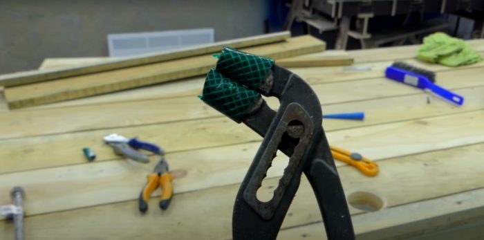 Меняя шланги, подводку для трубы, не обойтись без применения ключей. Однако их ассортимент и наличие не всегда соответствует спросу. Обычно подходящего размера не хватает при работе не только с трубами, но и для других задач. Избежать сложностей могут помочь даже клещи с регулируемым диаметром захвата. Вот только одна незадача возникает: они могут быстро испортить скручиваемый или закручиваемый металл и испортить его внешний вид. Чтобы это не произошло, стоит воспользоваться простой хитростью: найти парочку ненужных обрезков от резиновой шланги и надеть на клещи. Два простых наконечника помогут сохранить внешний вид гайки. Чтобы и в следующий раз при необходимости использовать такие мягкие насадки, хранить их можно на ручках клещей, так они точно не потеряются.