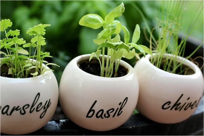 Выращивать травы из семян в помещении выращивать достаточно просто. А еще это очень полезно: их можно добавлять в различные блюда, а также в домашние травяные лекарства и чаи. При этом существует множество красивых и интересных способов высадки растений. Например, можно посадить их в оригинальные горшочки, купленные или сделанные своими руками. Вполне подойдут и обычные банки, которые декорируются мешковиной и джутовой веревкой. Оригинально и уютно смотрятся деревянные ящички — они украсят кухню в скандинавском стиле. Аналогично хорошо впишутся металлические ведерки с надписями трав, посаженных в них. Необычно будут смотреться растения, посаженные в яркие кружки — то, что нужно, для кухни.