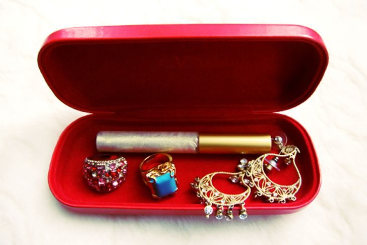 В старом футляре для очков можно хранить косметику, украшения и т. д., чтобы они лежали в сумке в одном месте