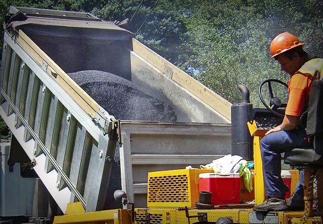 На самосвалах перевозят асфальт, который потом выгружается в асфальтоукладчики. Если бы фары не закрывались, они были бы полностью залиты битумом и асфальтом.