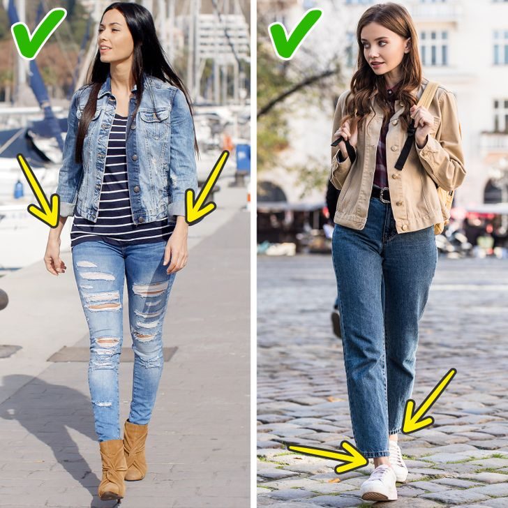 Здесь действует только одно, но очень важное правило: не составляйте весь образ из обтягивающих вещей, сочетайте джинсы с объемными предметами гардероба. Например, дополните их контрастным или ярким оверсайзом или вещами с крупной фурнитурой.
