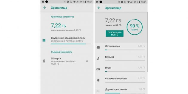 Недостаток свободного места на внутреннем накопителе приводит к замедлению обращения к файлам и, как следствие, к снижению быстродействия устройства. Крайне не рекомендуется заполнять хранилище под завязку — желательно оставлять незанятыми как минимум 10% от общего объёма, а лучше — 20–25%.