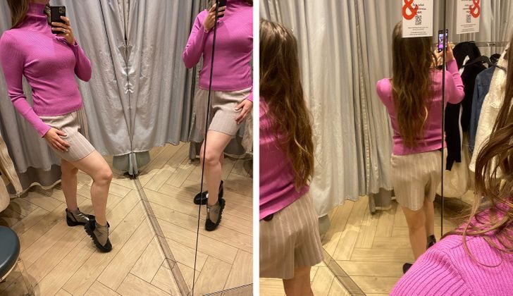 Обязательно используйте многопанельное зеркало в примерочной, чтобы проверить, как вы выглядите сзади и сбоку.