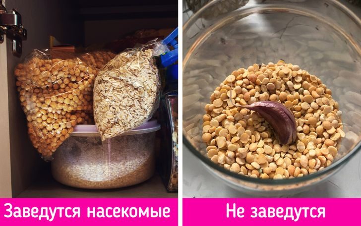 2. Чтобы в крупе не заводились насекомые, положите в емкость зубчик чеснока