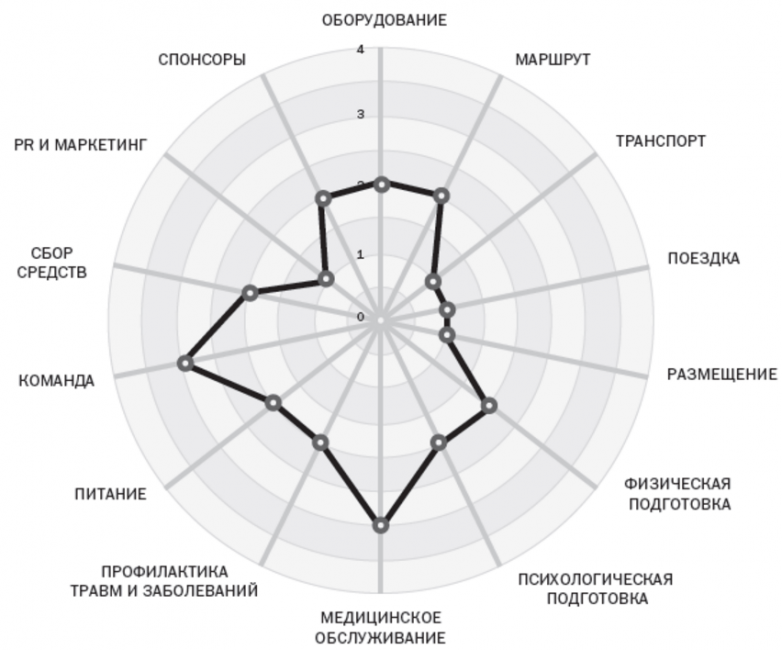Разные цели часто имеют схожие факторы успеха. Чтобы достичь успеха на работе и, допустим, в спорте, вам нужно одно и то же — сила воли. Но и всё остальное игнорировать нельзя, поэтому в начале проекта сделайте анализ элементов успеха и постройте собственное колесо успеха. Как это делается? Проще простого.Выпишите 5–7 составляющих успеха. Возьмём для примера велогонку. Чтобы победить, нужно следующее: оборудование, маршрут, физическая подготовка, психологическая подготовка, правильное питание, команда, деньги, PR и так далее.