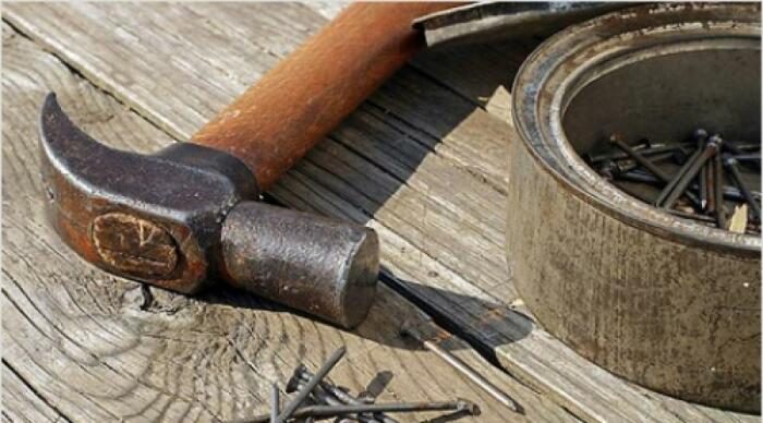 Зачастую, когда необходимо забить гвоздь в тонкую узкую и длинную деревянную или пластиковую рейку, металл просто ее ломает. Чтобы этого избежать, стоит включить в свой инструментарий шуруповерт. Сначала фиксируем гвоздь в нем и на небольшую глубину вводим гвоздь с его помощью. После того как гвоздь пройдет пластик или дерево, его можно спокойно добить посредством молотка.