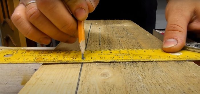Если делать множество меток на одном и том же расстоянии утомительно, то можно значительно облегчить и ускорить процесс. Для этого в уголке на нужной отметке расстояния просверливаем небольшое отверстие. Теперь туда можно поставить грифель карандаша и провести сразу прямую для отреза.