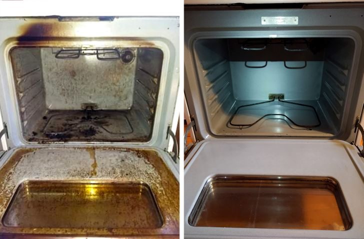 «До и после чистки старой духовки. Уверена, что предыдущие арендаторы никогда ее не мыли»